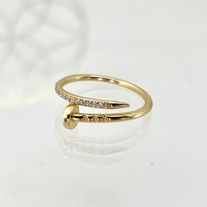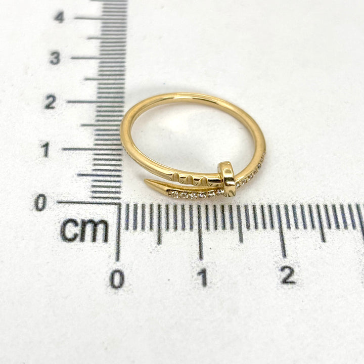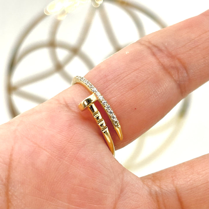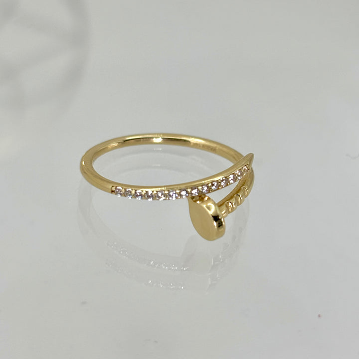 Este anillo de clavo en oro italiano 14k, talla 7, combina elegancia y modernidad. Sus delicadas circonias realzan su brillo y sofisticación, haciendo de esta pieza un accesorio perfecto para cualquier ocasión. Diseñado para quienes buscan distinción y estilo, ofrece durabilidad y un acabado impecable que resalta tu personalidad con cada detalle.