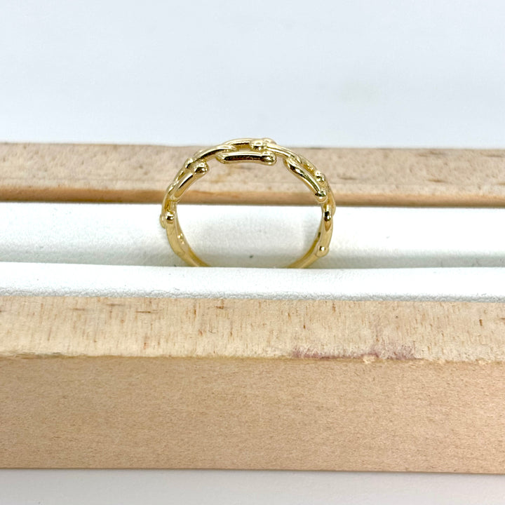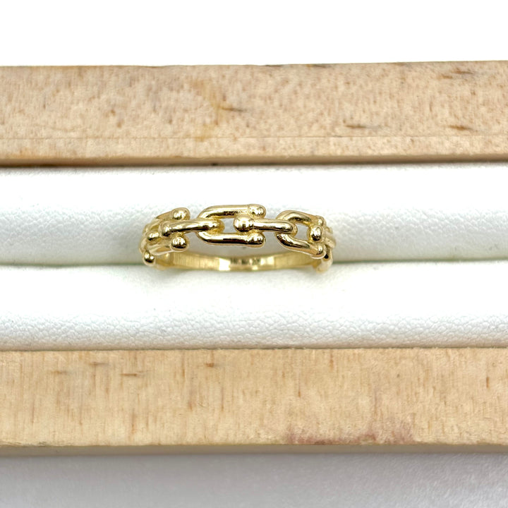 Descubre la elegancia atemporal con este anillo de diseñador en oro italiano 14k, talla 6. Su acabado impecable y diseño exclusivo realzan cualquier estilo, ofreciendo un toque sofisticado que perdura. Perfecto para quien busca calidad y distinción en una sola pieza.