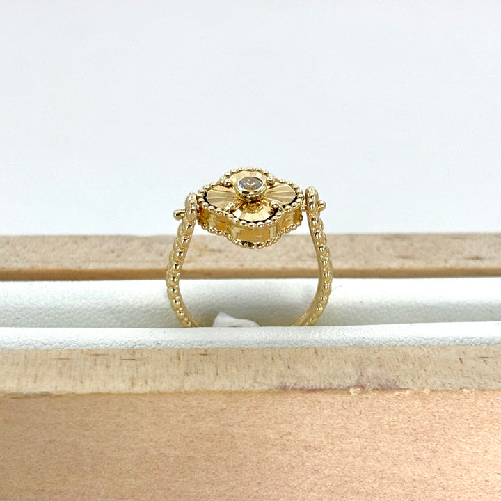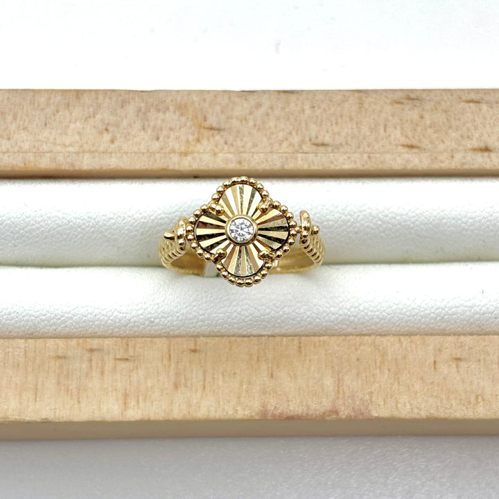 Este anillo de trébol flexible en oro italiano de 14k combina elegancia y comodidad para el uso diario. Su diseño adaptable se ajusta perfectamente al tamaño 5.5, realzando cualquier estilo con un toque único y sofisticado. Ideal para quienes buscan una joya que refleje personalidad y calidad en cada detalle.