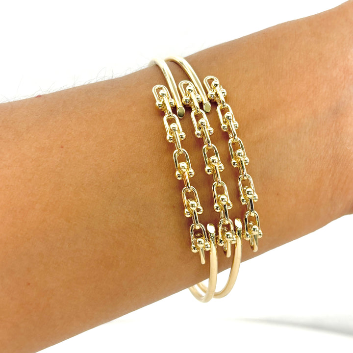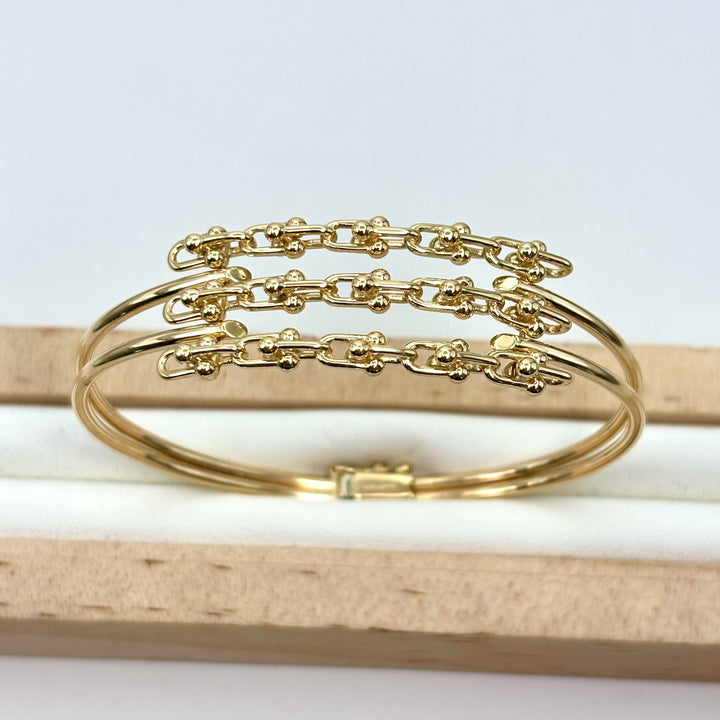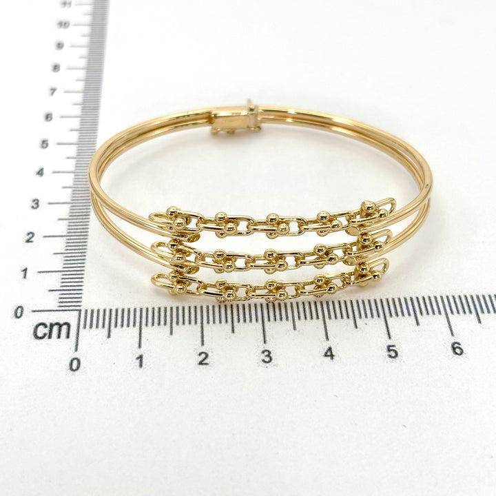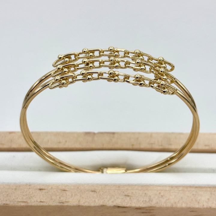 Descubre la elegancia atemporal con este aro diseñador en oro italiano de 14k. Con un diámetro de 6 cm y un largo de 18 cm, su diseño sofisticado resalta tu estilo con un toque de lujo y distinción. Perfecto para quienes buscan una pieza que combine calidad y exclusividad en cada detalle.