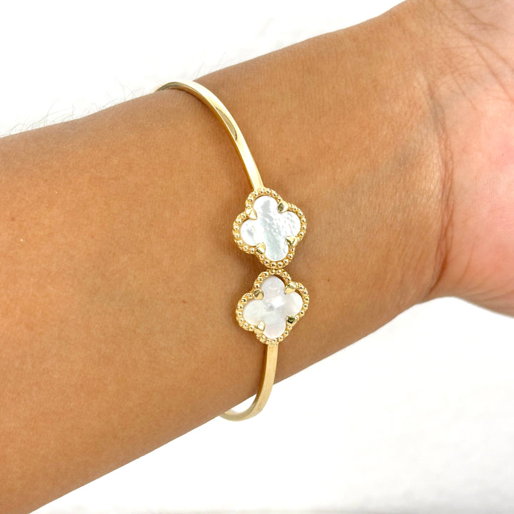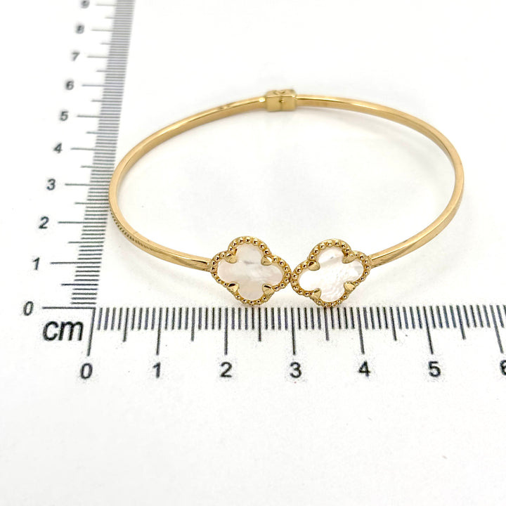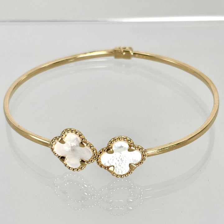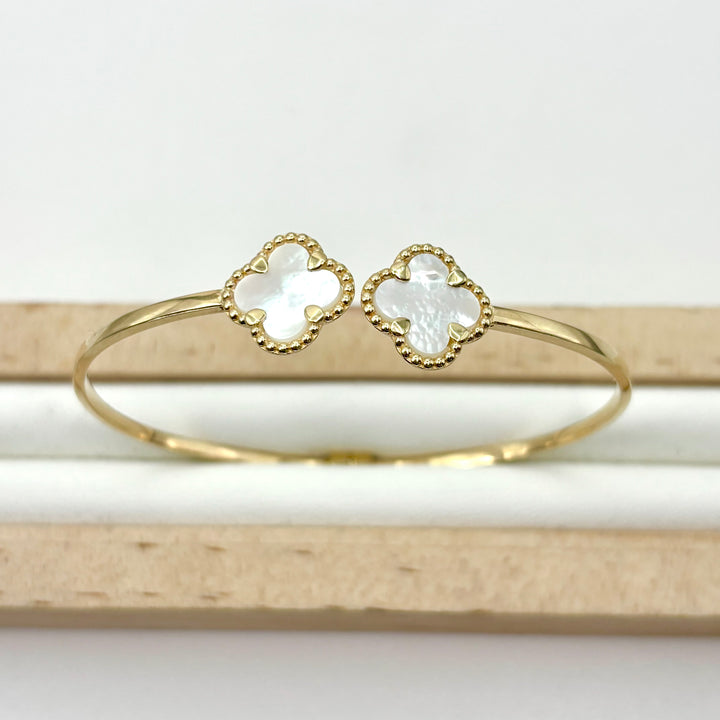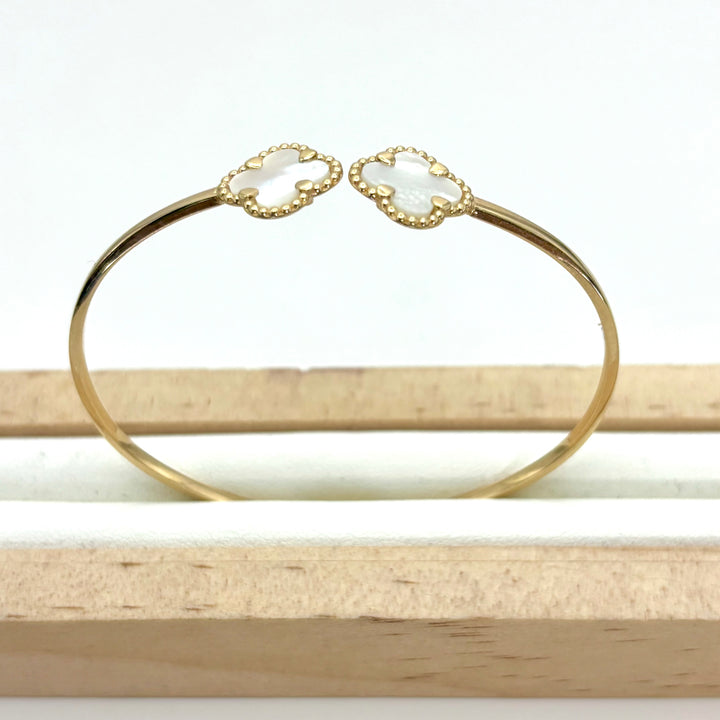 Aro de trébol de oro 14k con piedra madre perla