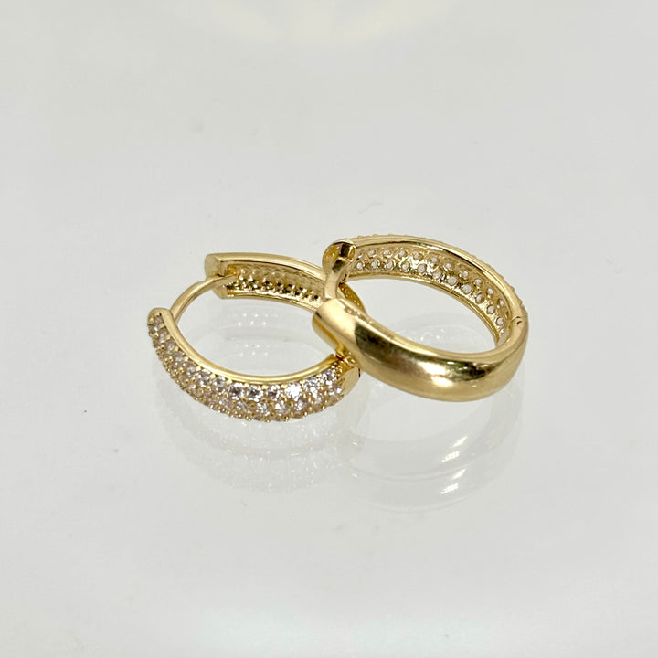 Estas arracadas de oro italiano 14k, con un diseño de 2.4 cm, destacan por su elegante incrustación de circonias que aportan brillo y sofisticación. Perfectas para complementar cualquier look, combinan calidad y estilo en una joya duradera y refinada.