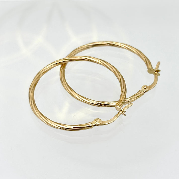 Arracadas torzales de oro 14k huecas mod. 3013