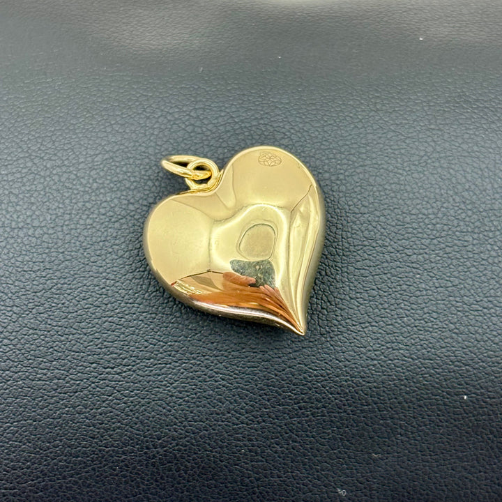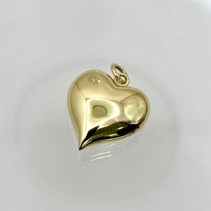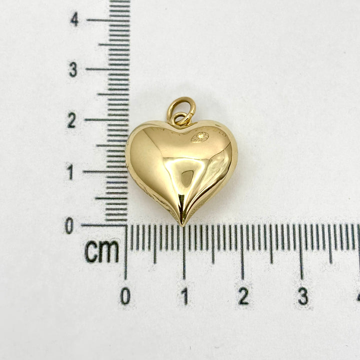 Este dije de corazón inflado está elaborado en oro italiano de 14 quilates, con un tamaño compacto de 2 cm que lo hace ideal para uso diario. Su diseño clásico y acabado pulido garantizan durabilidad y elegancia, aportando un toque sofisticado a cualquier atuendo. Perfecto para quienes buscan una pieza fina y versátil, que combine calidad artesanal con un estilo atemporal.