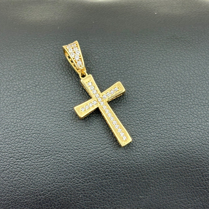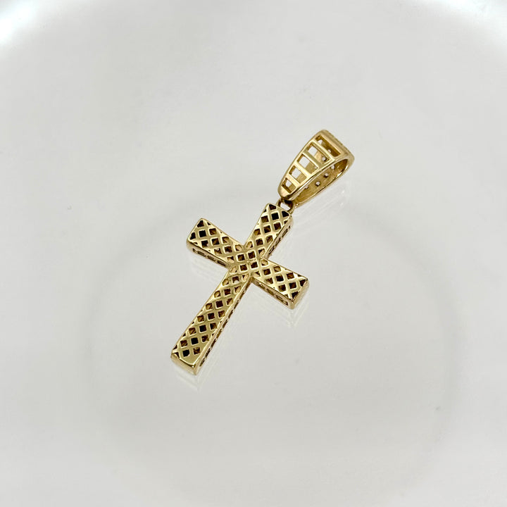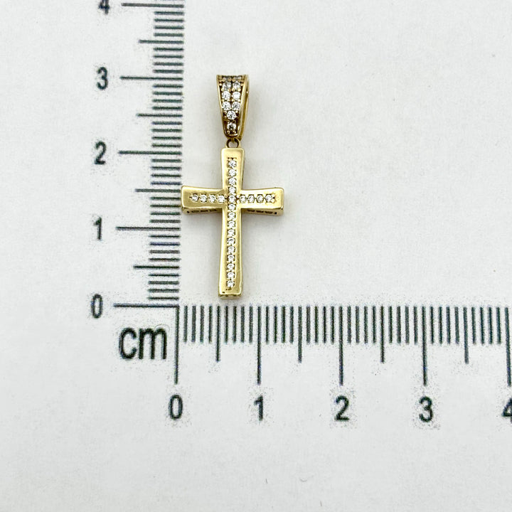 Dije de cruz de oro 14k con incrustraciones de circonias Mod. 3021