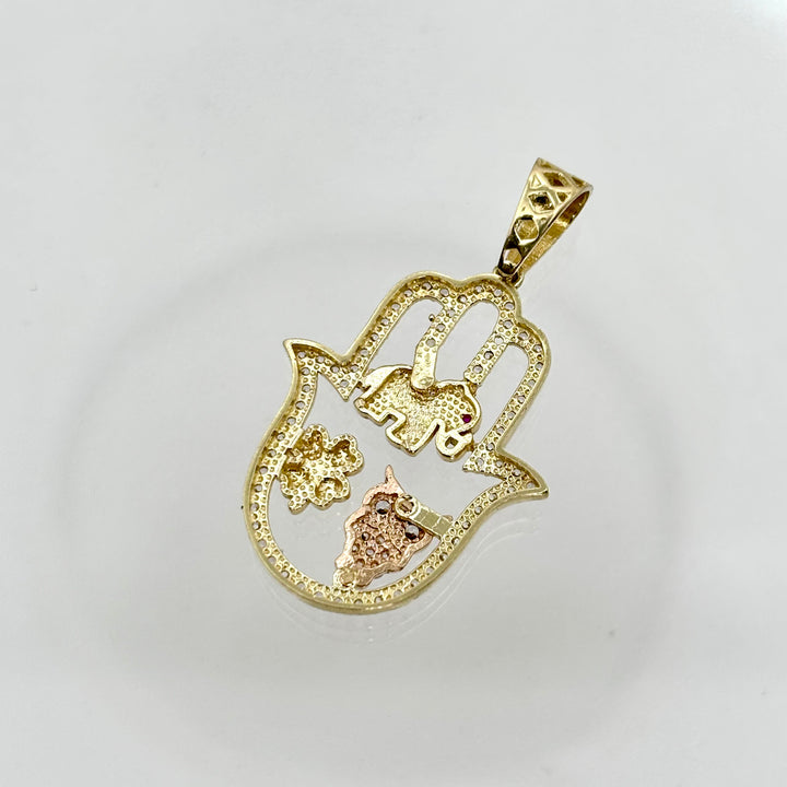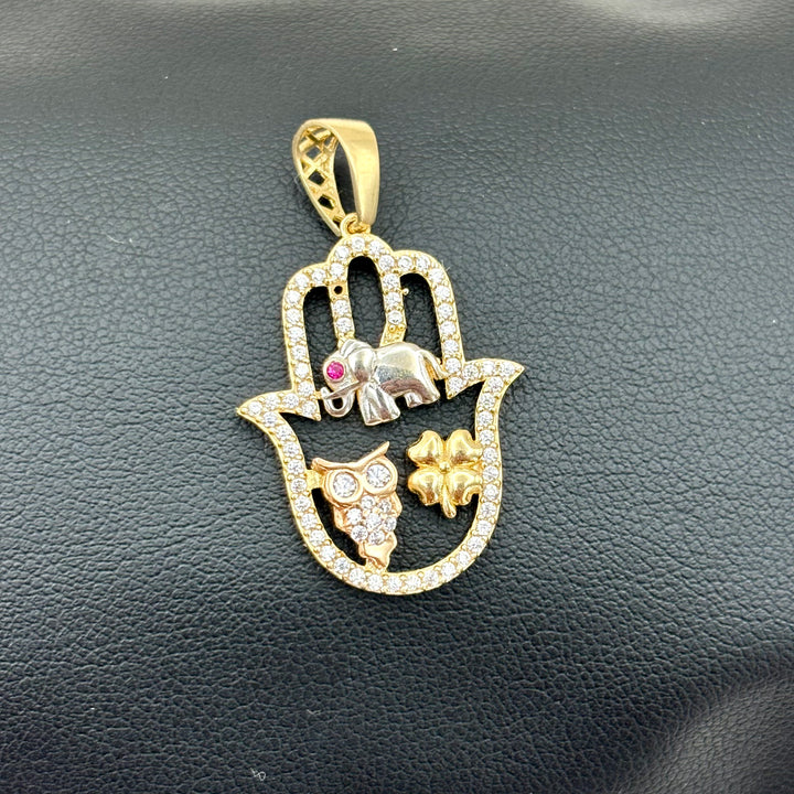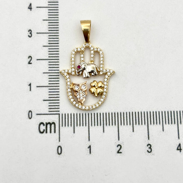 Dije de la suerte de oro 14k con incrustaciones de circonias