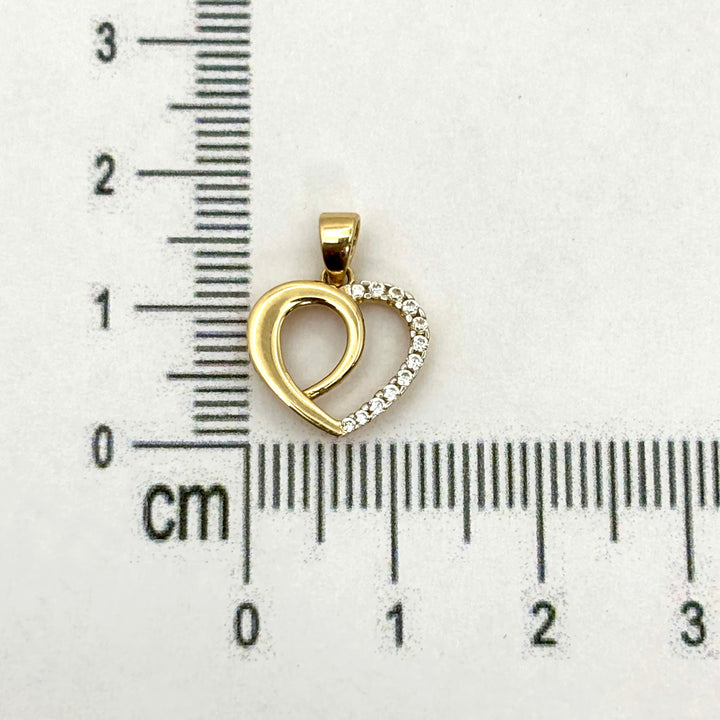 Dije de silueta de corazón de oro 14k con incrustaciones de circonias Mod. 1117