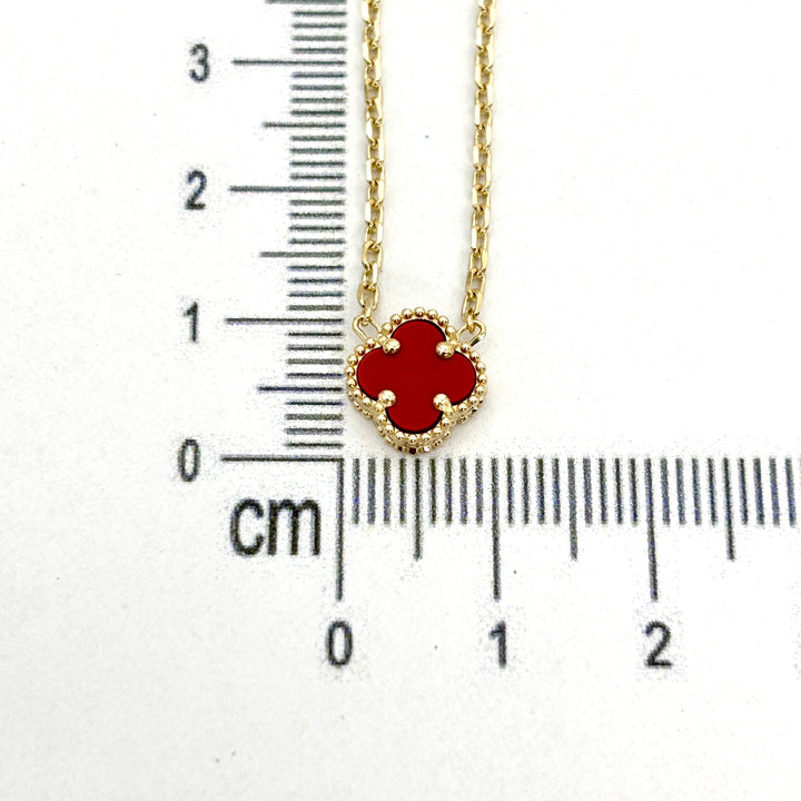 Esta elegante gargantilla de trébol está elaborada en oro italiano de 14k, ofreciendo durabilidad y un brillo sofisticado. Con una cadena de 45 cm, se ajusta perfectamente para resaltar tu cuello con un toque de distinción. La piedra jaspe roja añade un color vibrante y un significado especial, ideal para quienes buscan un accesorio único que combine estilo y simbolismo. Perfecta para cualquier ocasión, esta pieza realza tu look con elegancia y personalidad.