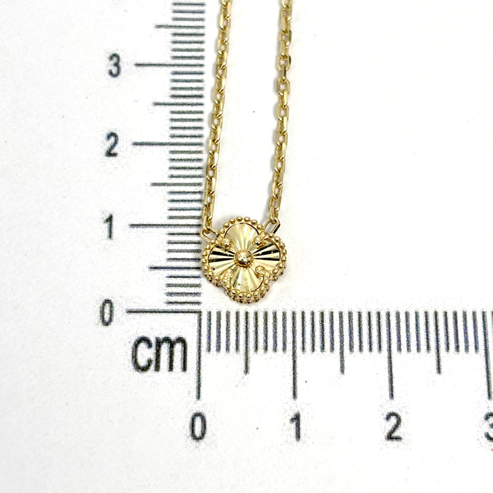 Esta elegante gargantilla de trébol mediano está fabricada en oro italiano de 14k, ofreciendo una durabilidad y brillo que resaltan en cualquier ocasión. Con una longitud de 45 cm, se ajusta cómodamente para complementar tu estilo con un toque sofisticado y simbólico. Un accesorio perfecto que combina calidad y diseño para realzar tu presencia.