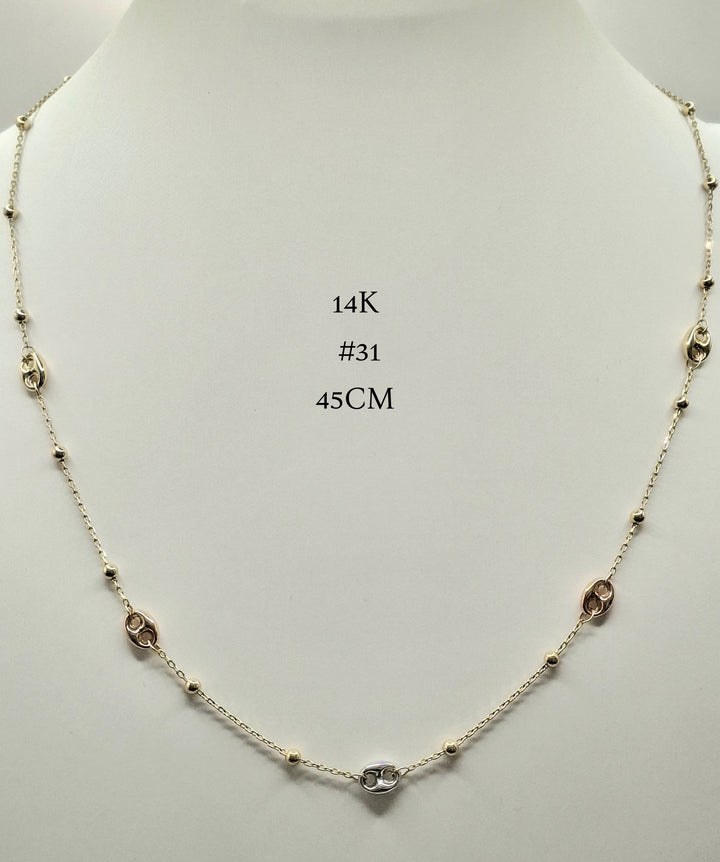 Descubre la elegancia atemporal con esta gargantilla tipo diseñador Florentina, elaborada en oro italiano de 14k. Con 45 cm de largo, es la pieza perfecta para realzar cualquier atuendo, aportando un toque sofisticado y exclusivo. Su diseño delicado y refinado garantiza que te destaques con estilo en cualquier ocasión. Ideal para quienes buscan calidad y distinción en una joya única.