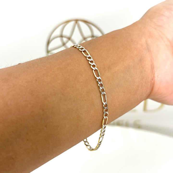 Descubre la elegancia clásica con esta pulsera 3x1 diamantada de oro italiano 14k. Con 18 cm de largo y 3.5 mm de ancho, ofrece un diseño delicado y brillante que realza cualquier estilo. Su calidad y acabado la convierten en el accesorio perfecto para destacar tu personalidad con sofisticación y durabilidad. Ideal para lucir a diario o en ocasiones especiales.