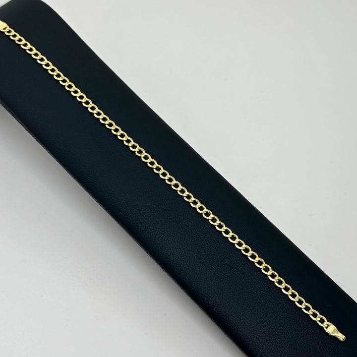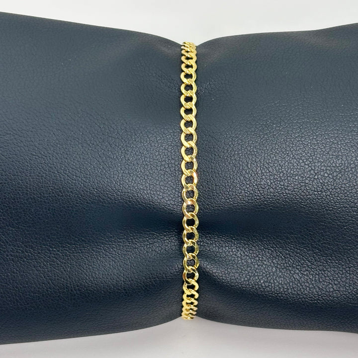 Descubre la elegancia y durabilidad de esta pulsera cubana amarilla, elaborada en oro italiano 14k. Con un largo de 18 cm y un ancho de 3 mm, su diseño clásico y versátil realza cualquier atuendo, aportando un toque sofisticado y de calidad que resaltará tu estilo en cualquier ocasión. Perfecta para quienes buscan una pieza de joyería reforzada y con un acabado impecable.