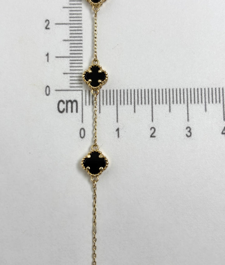 ¡Haz una declaración elegante con nuestra pulsera de flores pequeñas negras con ónix! Hecho con oro amarillo de 14k y una piedra ónix, esta pulsera de diseño para dama viene con un estuche y garantía de calidad. Con un ancho de 7 mm y un largo de 18 cm, ¡tu estilo estará asegurado con un toque de sofisticación!