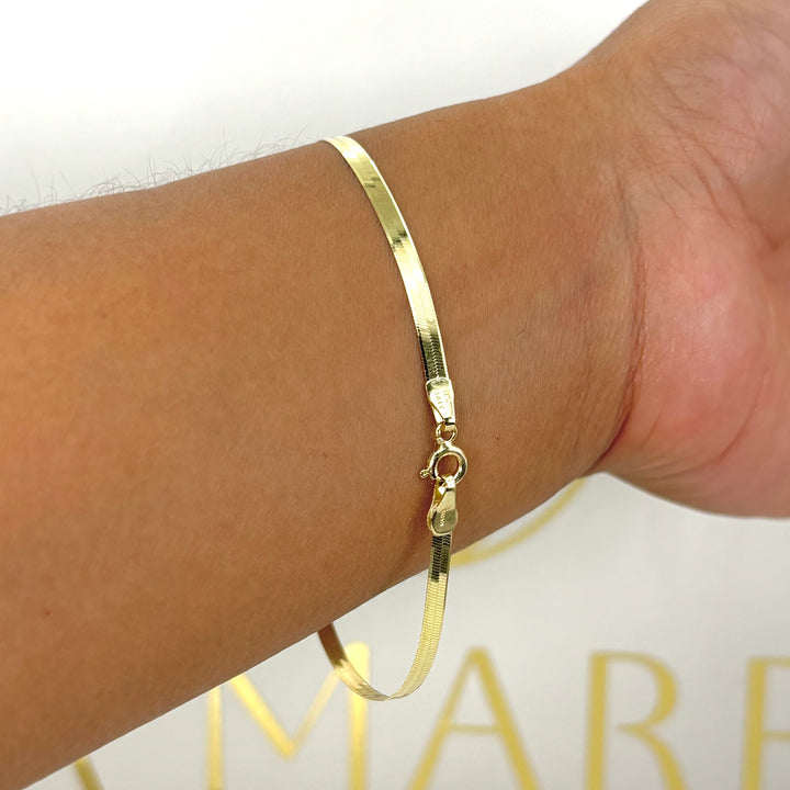 Una joya icónica que representa la elegancia en su forma más pura. La pulsera Panza de Víbora se distingue por su diseño plano, pulido tipo espejo y su flexibilidad que se adapta suavemente a la muñeca.