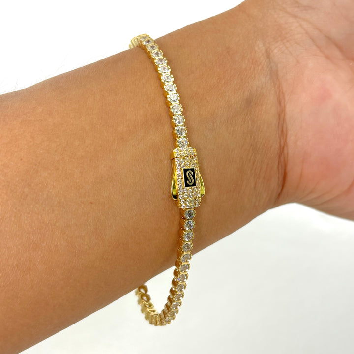 Pulsera tipo tenis de oro 14k de diseñador mod circular 7218