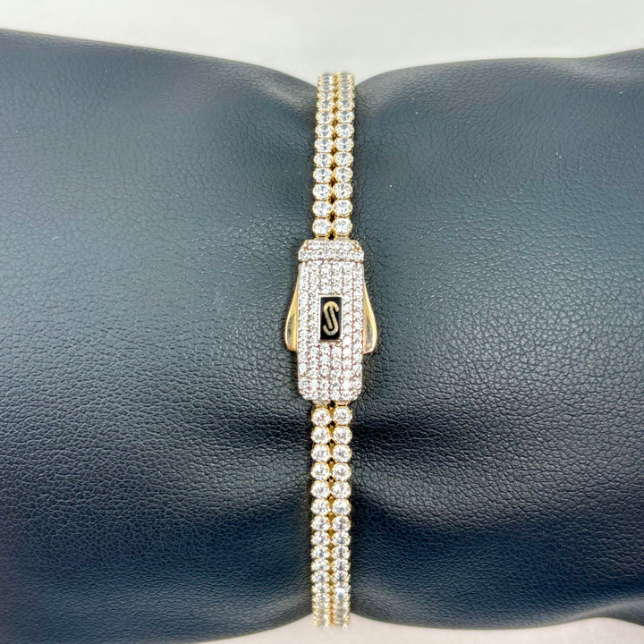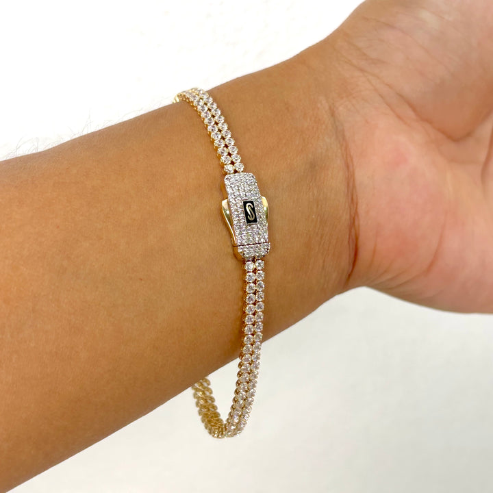 Pulsera tipo tenis de oro 14k de diseñador mod circular doble 6718